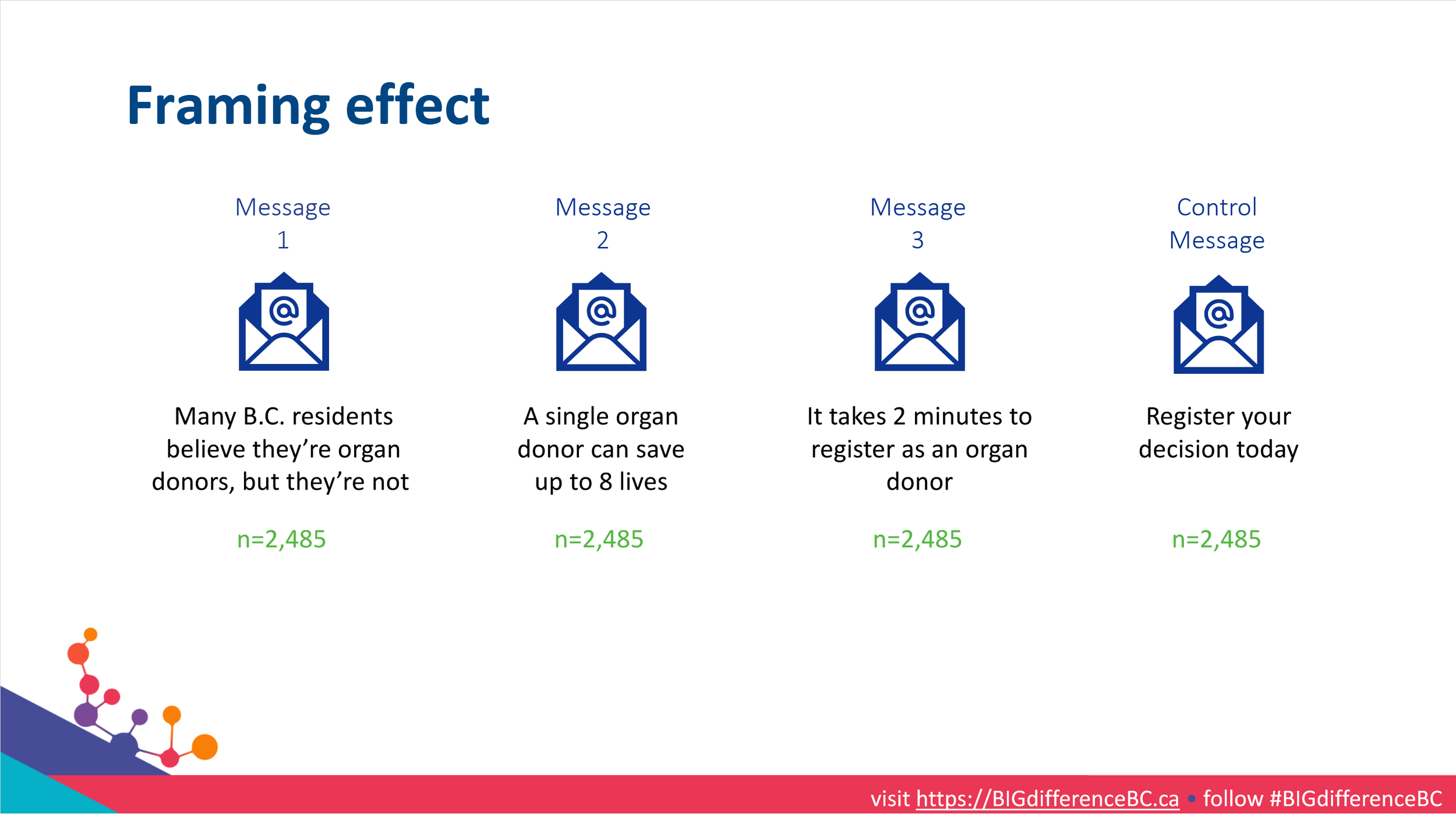 This project explores the effectiveness of low-cost, scalable behavioural interventions—specifically through targeted e-newsletters—to increase organ donor registrations in British Columbia, addressing the post-pandemic decline and enhancing the province's capacity to meet the demand for lifesaving transplants.